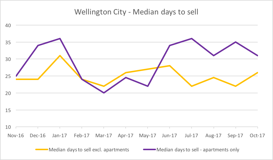 285 properties changed hands in Wellington City in October (based on REINZ stats). This is up from 181 last month. Nearly equal to what we say in October 2016 (287 sales).